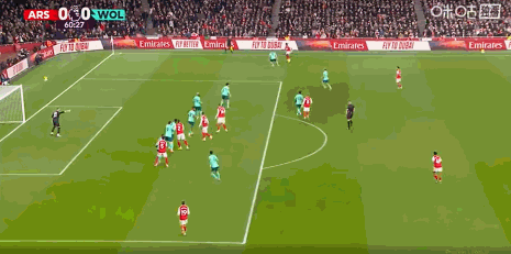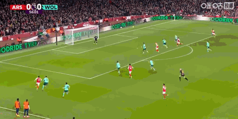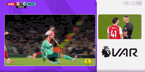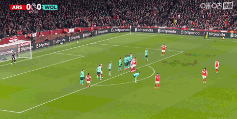 第67分钟,赖斯任意球直接攻门,狼队门将指尖托出