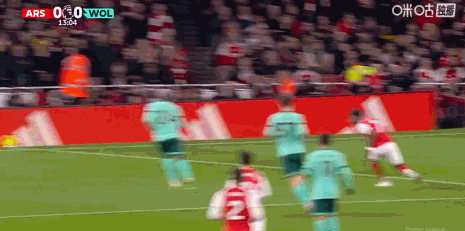 第18分钟,萨卡传中,赖斯头球攻门被化解