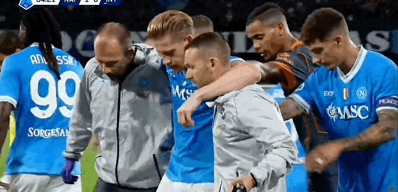 雷速体育10月26日讯 尽管在本轮意甲中那不勒斯3-1击败国米,取得一场重要胜利,但球队的伤病潮仍在持续,最新一位倒下的球员是比利时中场德布劳内。他在那不勒斯对阵国际米兰的比赛第33分钟,因右腿腘绳肌伤势被迫含泪离场,而就在此前,他刚刚亲自主罚命中一粒点球,帮助球队取得领先。